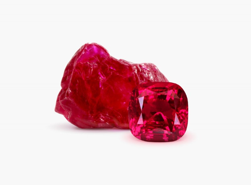 Рубин — один из наиболее дорогих камней. По твердости он уступает только алмазу. Цвета этого драгоценного камня варьируются от ярко-красного до темно-красного и даже фиолетово-красного.