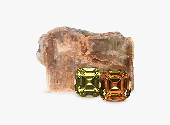 Цвет камня диаспора очень многогранен. Примесь железа придает минералу слегка желтый оттенок, окись марганца — розоватый, ионы хрома способны окрасить камень в зеленый цвет. Обычно султанит чистый и прозрачный, вкрапления в нем практически отсутствуют. Встречаются даже белесые или практически бесцветные кристаллы.