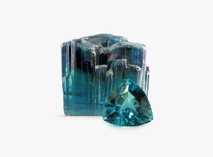 Индиголит относится к силикатам. В зависимости от состава меняется оттенок камня. Так, среди минералов встречаются сине-зеленые оттенки и зеленовато-голубые, больше напоминающие аквамарин. Все зависит от валентности железа.