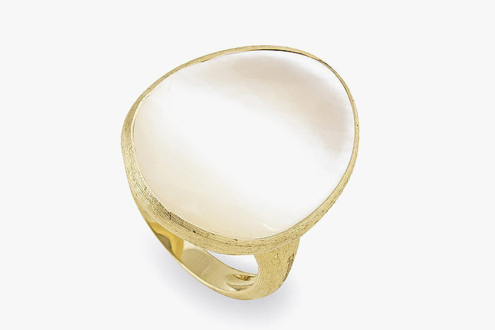 Элегантное мерцающее кольцо от Marco Bicego из коллекции Lunaria выполнено из желтого золота и натурального перламутра. Украшения выглядит достаточно нейтрально, чтобы носить его каждый день, и при этом безусловно крайне эффектно, что делает его также идеальным выбором для особых случаев. Цена кольца 2810 долларов.
