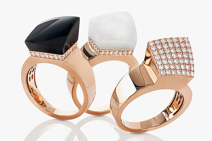 Кольцо Roberto Coin из отполированного 18-каратного розового золота украшено превосходным белым нефритом массивной угловатой формы, объятым поясом из бриллиантов. Созданный в Веченце, Италия, экстравагантный перстень станет идеальным спутником этим летом. Стоимость его составляет 4200 долларов.