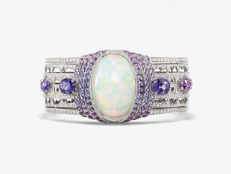 Её роскошная коллекция готова затопить Grand Palais сине-зелёными красками океана и мириадами оттенков словно бы жидких самоцветов: сапфиров, изумрудов, лазуритов, танзанитов и турмалинов, водянисто-белых эфиопских опалов, тёплых песчаных тонов жёлтых сапфиров и золотистого южнотихоокеанского жемчуга. Клэр — страстный колорист, а её украшения — приглашение нырнуть с головой в драгоценные воды первоклассных самоцветов.
