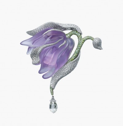 Брошь Cartier из платины в форме орхидеи с аметистами, гранатами и бриллиантами, 2010 год