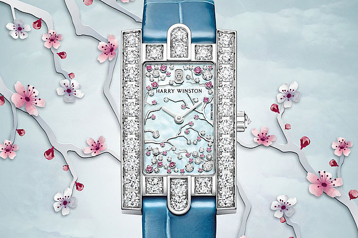 Восточные мотивы легко читаются в новых часах Harry Winston, ведь главным украшением модели стали хрупкие ветви цветущей сакуры — неотъемлемого символа Японии. Фантастически красивое, но очень недолгое явление ежегодно отмечается пышным фестивалем — так жители страны восходящего солнца приветствуют долгожданную весну. Название праздника Ханами так и переводится с японского языка — «любование цветами».