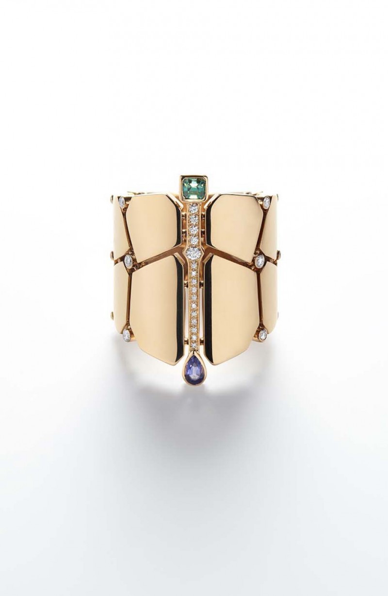 Ещё одной загадочной деталью в новой коллекции стала тончайшая «колонна», украшенная турмалинами, бериллами, иолитами и перидотами и надвое разделяющая ожерелья, кольца, серьги и браслеты, вошедшие в Niloticus. Яркие цвета драгоценных камней, хрупкость и строгость колонны, которую они украшают, резко контрастируют чистой животной силой, которую источает золота чешуя. Может ли это быть символом сверхъестественной силы, египетской богини-укротительницы дикого зверя — линия, связывающая животный мир с мифологией? Ответ на эту загадку Древнего Египта каждому придётся искать самому.