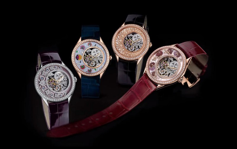 Все модели выполнены из золота 750 пробы и приводятся в движение тончайшим механизмом calibre 1003. Великолепный декор циферблата выполнен с точностью до десятых долей миллиметра, а на задней панели часов вручную нанесена изящная рельефная фактура.