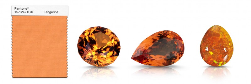 Pantone считает цвет Tangerine (англ. «мандариновый») «спонтанным», «энергичным» и «приветливым». Горные породы сохранили множество драгоценных камней, цвет которых соответствует такому описанию. Эти сногсшибательные самоцветы могут стать идеальными красочными центральными камнями в имиджевых украшениях.