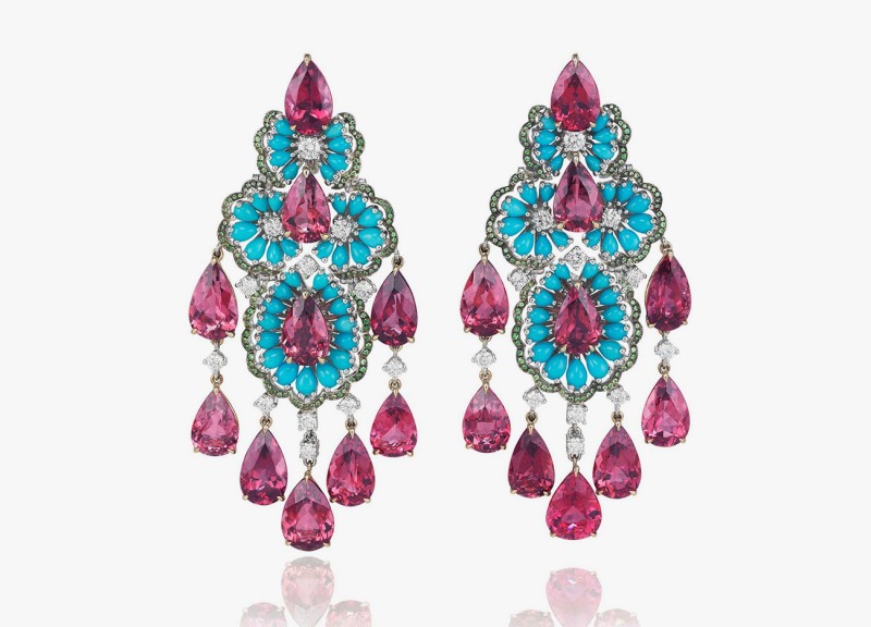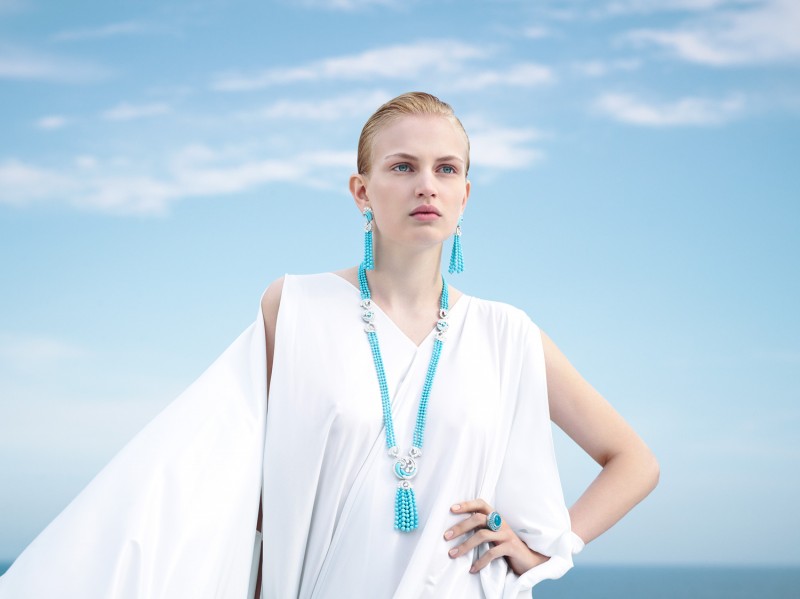 И на Каннском кинофестивале этого года бирюза привлекла немало внимания: одним из ярчайших украшений мероприятия стали серьги из коллекции Red Carpet от Chopard. Бирюза цвета лазурной волны прекрасно сочетается с сочными рубеллитами, зелёными цаворитами и бесцветными бриллиантами.