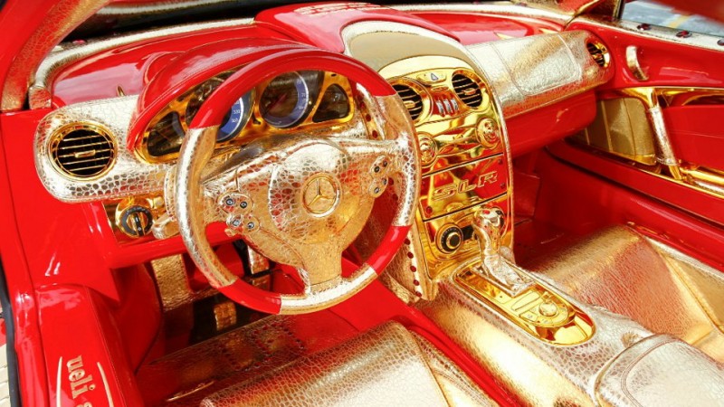 Швейцарский богатей внёс ряд изменений в окраску, колёса, интерьер и даже двигатель роскошного авто. На корпусе обновлённого Mercedes покоится 25 слоёв красной краски, в которой было разведено 5 килограммов золотой пыли.