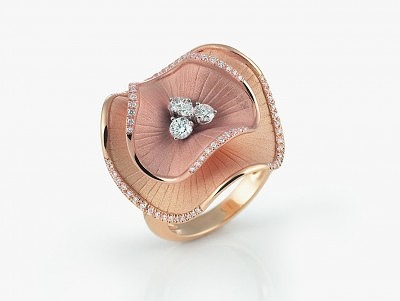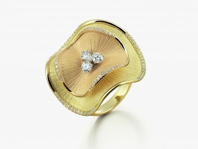 Сочетание золота самых невероятных оттенков — оранжево-абрикосового, естественного бежевого, а также цвета розового шампанского — и бриллиантов с золотой огранкой создают оптическую иллюзию глубины каждого из украшений этой элегантной линии.