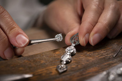Браслет украшен каскадом бриллиантов разной огранки и вставками из перламутра. Они кажутся парящими в воздухе благодаря специальной конструкции, разработанной в ателье высокого ювелирного искусства Bvlgari в Риме.