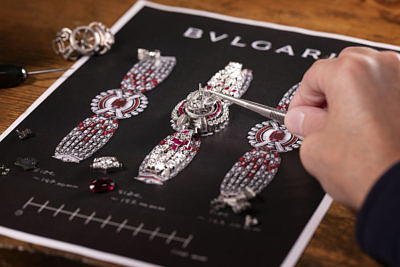 Так, часы Ruby Metamorphosis, самые роскошные из когда-либо созданных Bvlgari, безупречное олицетворение смелого и яркого стиля «Римского ювелира времени» (Roman Jeweller of Time). Изготовление единственного экземпляра этой модели потребовало 1650 часов.