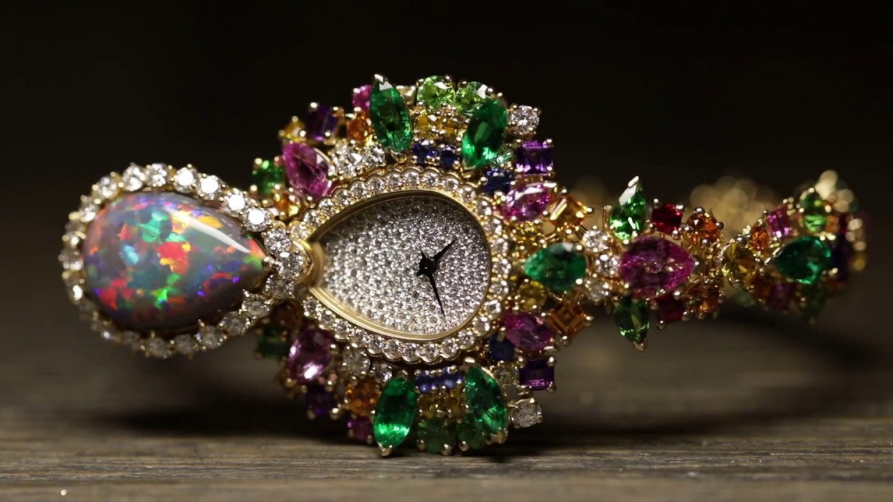 Линейка включает в себя кольца, серьги, колье, центром которых стали опалы разных цветов — от нежно-розовых, почти белых, с нежным мерцанием, до черных опалов, гипнотизирующих игрой огненных всполохов. Однако особенно среди всего великолепия выделяются 8 ювелирных часов, выполненных в фирменном стиле де Кастеллан: безумная смесь разноцветных драгоценных камней, собранных в едином «букете», а в центре — окруженный бриллиантами опал, за которым спрятался миниатюрный циферблат. Сама Виктуар предпочитает называть свои изделия браслетами, которые могут подсказать время.