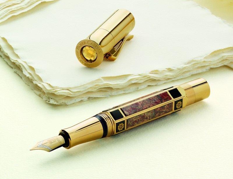 Технологический прогресс давно и небезуспешно пытается заставить нас забыть о бумаге и ручке, подсовывая взамен клавиатуру, но высококлассные авторучки, больше похожие на ювелирные украшения, чем на письменные принадлежности, никогда не выйдут из моды. Ручка 2014 года от Faber-Castell AG, выполненная из золота, кварца и яшмы — хороший пример такого пишущего инструмента класса люкс.