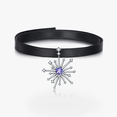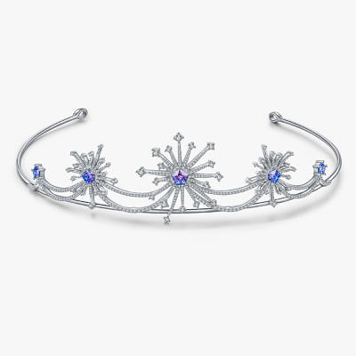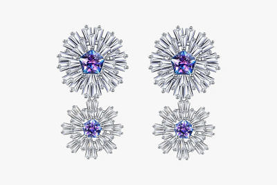 Все изделия коллекции сочетают в себе яркие фиолетовые и красные кристаллы Swarovski Zircon формы Pentagon Star и бесцветные фианиты, оправленные в сияющее серебро с родиевым покрытием, а также позолоченное серебро.