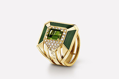 Восьмиугольный узор My Green в глубоких, ярких оттенках турмалина и малахита намекает на Вандомскую площадь, тогда как My Red представляет собой игривую и пылкую вариацию на тему сумки 2.55. В изделиях же из набора My Chain подвижная золотая оправа обрамляет восьмиугольный дымчатый кварц в бриллиантовой окантовке.