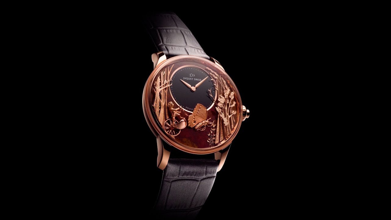 Оригинальная версия Loving Butterfly была выпущена еще в 2017 году. За последние несколько лет появилось несколько вариантов этих наручных часов: с циферблатом из опала, оникса, черного перламутра, авантюрина и даже метеорита. Неизменным остается центральный элемент изделия: «живая картина», включающая маленького херувима, едущего через заколдованный лес на колеснице, запряженной бабочкой. Каждая деталь выполнена из золота, а вдохновением послужил эскиз, нарисованный в 1774 году автоматоном The Draughtsman (в переводе — «рисовальщик, чертежник»), созданным Анри-Луи Жаке-Дро.