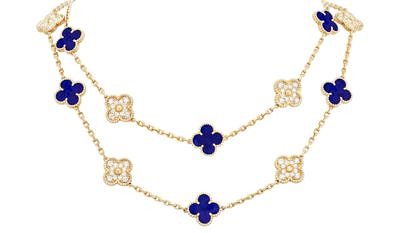 В 2018 году драгоценным четырехлистникам Van Cleef & Arpels исполнилось полвека. К юбилею бренд создал коллекцию «винтажных» ювелирных талисманов с лазуритом, хрусталем и серым перламутром.