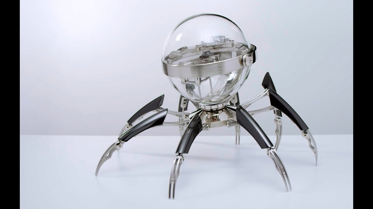 Приводится в движение инопланетный или паукообразный Octopod новейшим восьмидневным турбийонным механизмом производства L’Epée 1839, расположенным вертикально. Вращающийся спусковой механизм, отвечающий за точность хода часов, прикреплен к минутной стрелке, то есть он совершает полный оборот вокруг своей оси за шестьдесят минут. Если не приглядываться, то может показаться, будто механизм подвешен внутри стеклянного купола. Толика волшебства стала возможной благодаря новаторскому основанию, сделанному из прозрачного стекла, на которое нанесено противобликовое покрытие, делающее его почти невидимым.