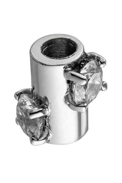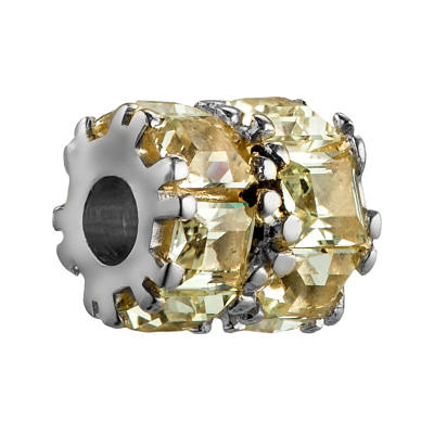 На основание из белого и желтого золота нанизываются звенья, инкрустированные выращенными в лаборатории бриллиантами, изумрудами и сапфирами. Разноцветные блоки можно чередовать с элементами без камней.
