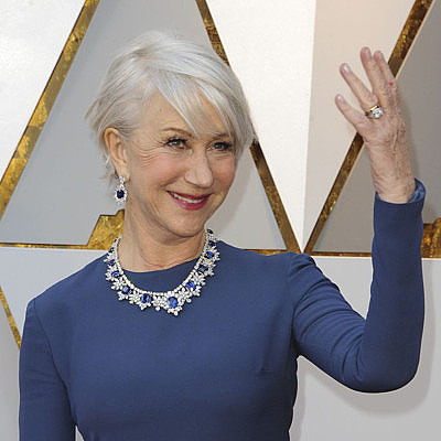 Элегантная Хелен Миррен была неотразима в колье и серьгах от Harry Winston: более 130 карат бриллиантов, несравненные сапфиры и вновь платина.