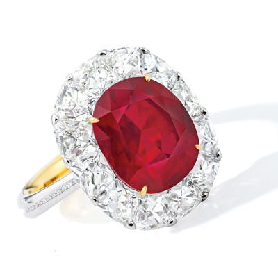 Кроме того, Sotheby’s планируют продать кольцо с бирманским рубином цвета «голубиная кровь» весом в 6,41 карата огранки «кушон». Рубин окружен бесцветными бриллиантами французской огранки. Изделие, изготовленное гонконгской ювелирной компанией Forms, оценивают в 2,9 миллиона долларов.