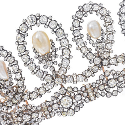 Тиара с жемчугом и бриллиантами, запланированная к продаже на аукционе Sotheby’s Magnificent Jewels and Noble Jewels. Фото: Sotheby’s