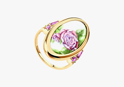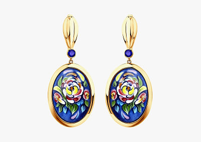 Центральная линейка украшений весенне-летнего сезона. Золотые украшения, инкрустированные фианитами и жемчугом, оформлены в классической технике работы с эмалью — финифти. Нежный рисунок придает каждому изделию романтичное настроение.