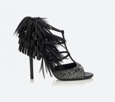 Креативный директор Jimmy Choo демонстрирует свою любовь к необычным драгоценным камням и удивительный талант в объединении самоцветов и изящной обуви. Цвет каждой пары туфель совпадает с цветом использованных для её украшения драгоценных камней. Довершают коллекцию три пары стильных сумок, дизайн которых также принадлежит Чой. Коллекция пока не доступна для покупки, но, судя по фото, туфли с кисточками и чёрными бриллиантами — самая впечатляющая её модель. А вам как кажется?